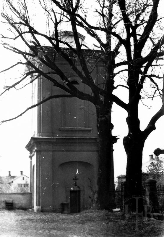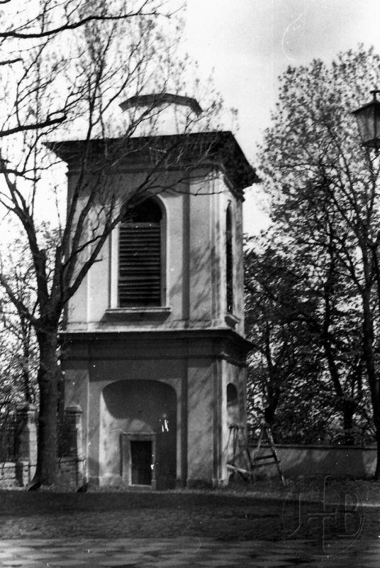 Murowana późnobarokowa wieża została wzniesiona z fundacji Józefa z Tenczyna Ossolińskiego w latach 1779–1781., jako wolnostojąca dzwonnica. Obiekt znajduje się na pd.-zach. od kościoła parafialnego.