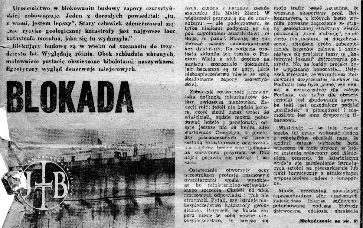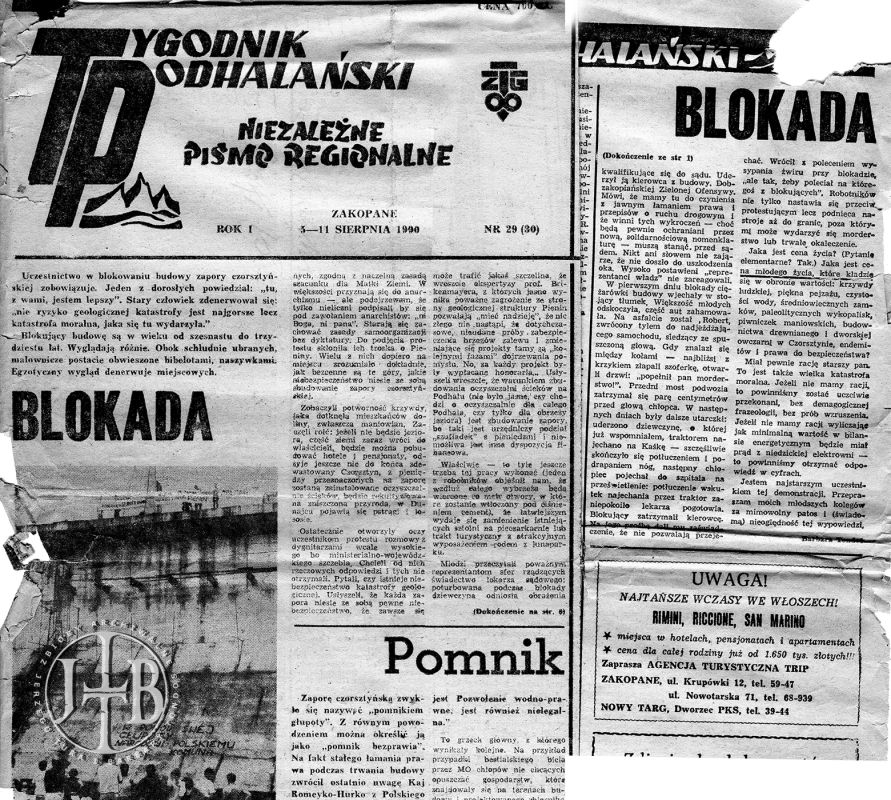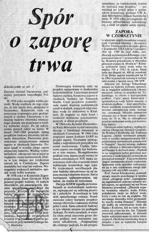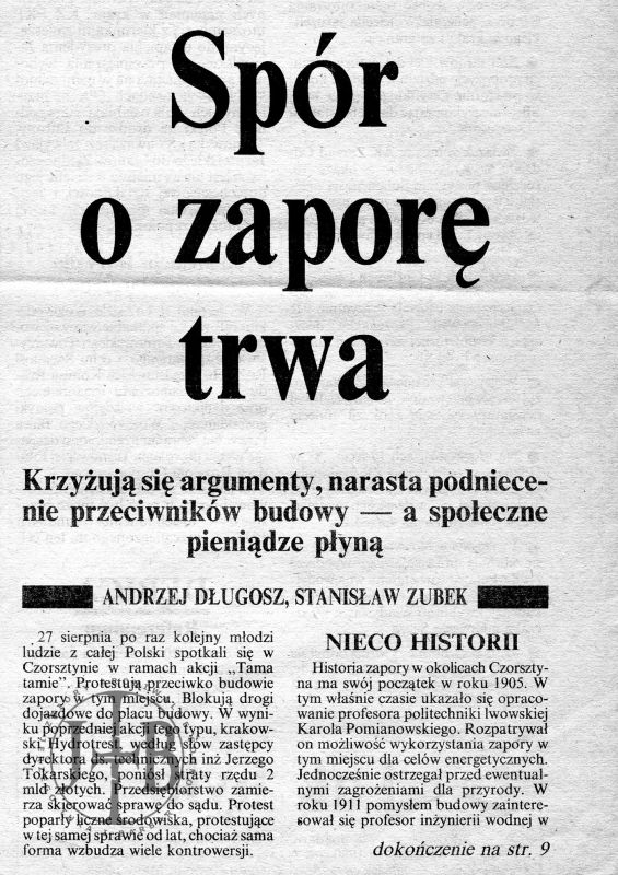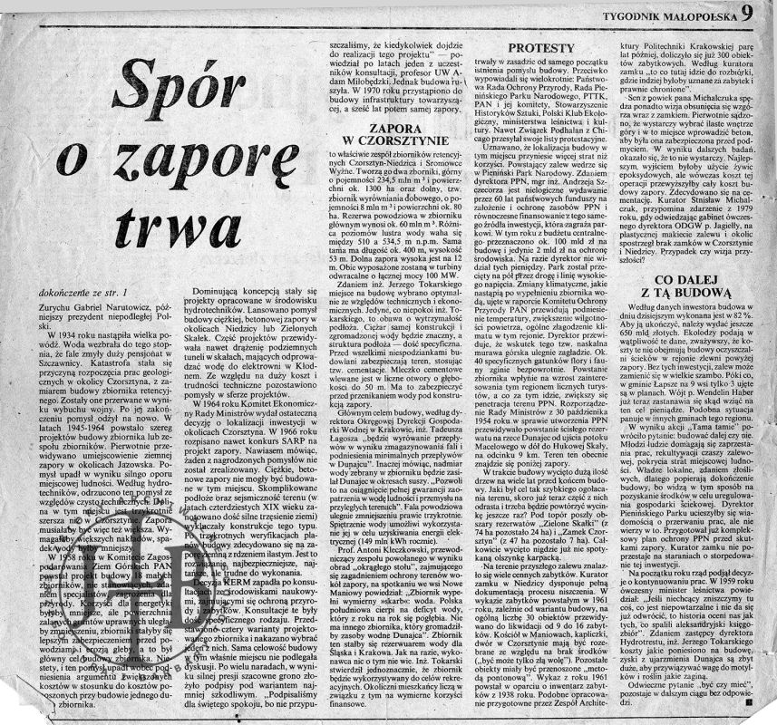 Artykuły prasowe ilustrujące spór o powstanie zapory w Czorsztynie