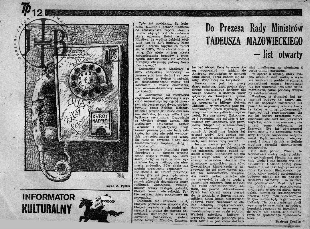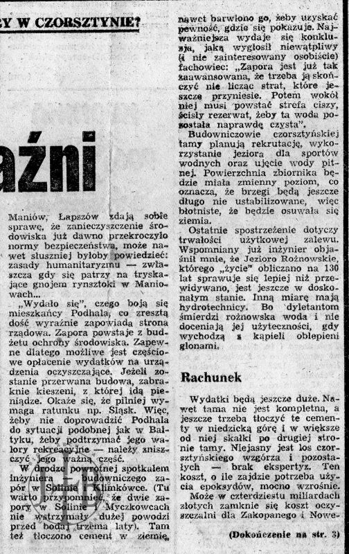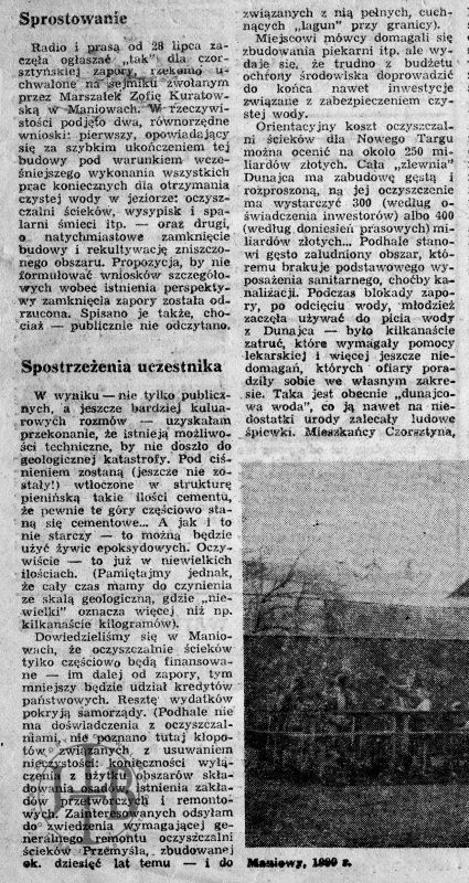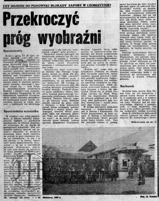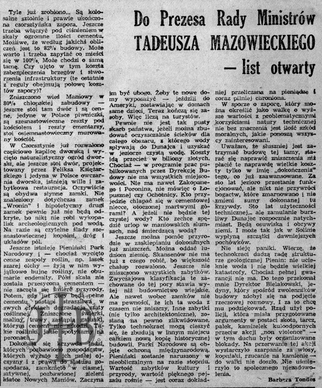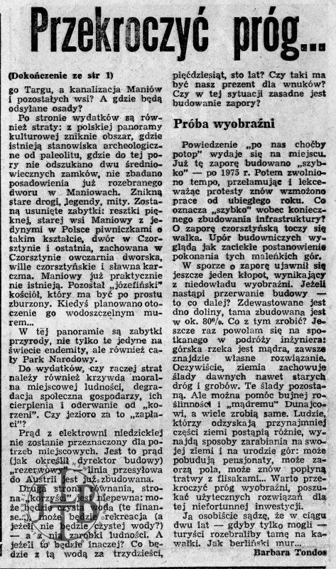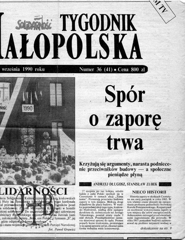 Artykuły prasowe ilustrujące spór o powstanie zapory w Czorsztynie