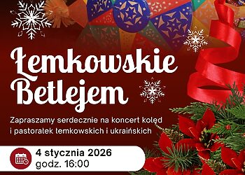 Грекокатолицка парохія св. Йоана Крестителя в Заменицях просит на святочну подію - «Лемківскій Вифлеєм». Колядуваня одбуде ся 4. січня/януара 2026 р. в Містецкым Осередку Культуры Спорту і Рекреациі в Хойнові (нижньошлезскє воєвідство)....