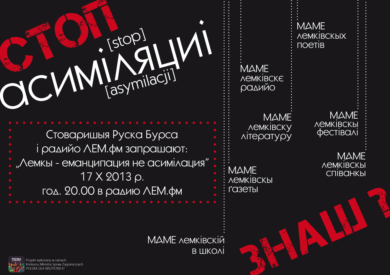 Запрашаме на 19.00 год. на бесіду нажыво з др Мирославом Копыстяньском - новом репрезентантком лемківской етнічной меншыны в Спільній Комісиі Уряду та Нацийональных і Етнічных Меншын, покликаном 1. вересня тр. рішыньом бывшого...