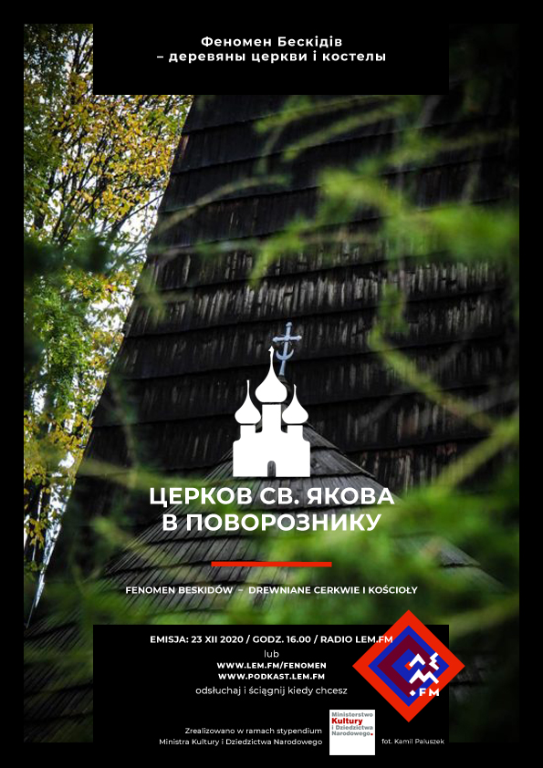 Запрашам до выслуханя девятнадцетого одтинка проґраму з циклю «Феномен Бескідів – деревяны церкви і костелы» зреализуваного в рамках творчой стипендиі Міністра Культуры і Нацийональной Спадковины.