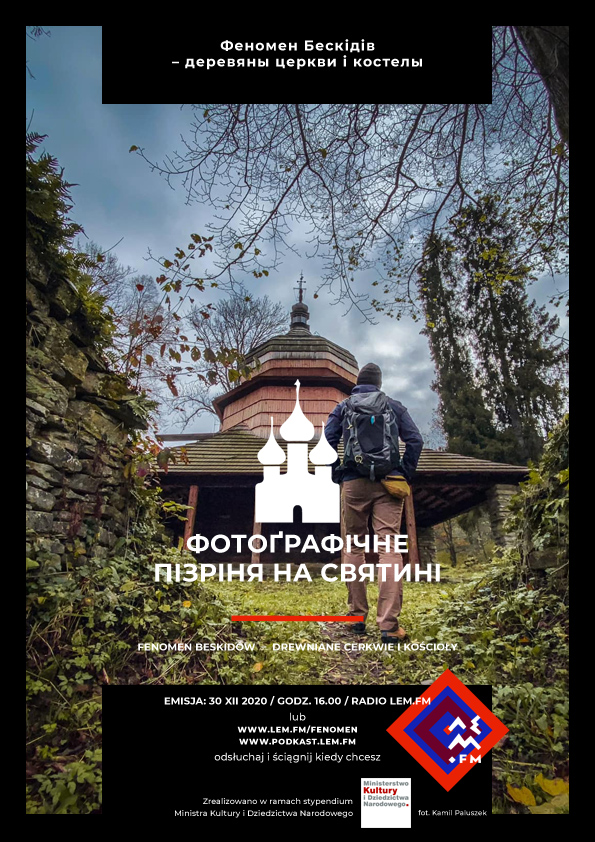 В проґрамі пн. «Фотоґрафічне пізріня на святыні» Каміль Палюшек буде оповідал про своє долголітнє заінтересуваня сакральном, деревяном архітектуром церкви возношеных столітями через Лемків. Нашы храмы незмінні являют ся інспірацийом для розмаітых артистів, творців, пасийонатів ци любителів. Каміль Палюшек затримує іх красу на вынятковых фотоґрафічных кадрах. Єст він абсольвентом Выділу Штукы Ряшівского Університету, жыє і робит в Ряшові. Єст запаленым роверистом і любительом близшых і дальшых подорожы. Фотоґрафійом занимат ся од вельох років, а головным мотивом сут церкви – іх брыла, зовнішня форма і місце в просторі. На ровері обіхал уж велику част обєктів, якы находят ся на Пути Деревяной Архітектуры. Своі роботы презентує головні через порталі социяльных медий – а то фанпейдж під назвом Cerkwie на сайті Facebook та профіль cer.kwie в сервісі Instagram. Оба місця громадят в сумі пару тисячів любителів Камільовых знимок і його пізріня на деревяну сакральну архітектуру.
