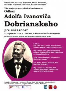 В суботу 17-го септембра одбуде ся подія під назвов Заповідь Адолфа Івановіча Добряньского про сучасность. Співорґанізаторами події, на котрій одзвучіть пять тематічных лекцій, суть Русиньске здружіня інтересів і Матиця словацька. Подія зачінать о 13.00 год. в просторах засідалні Містьского уряду в Гуменнім і лекції будуть передавати доц. Ян Шафін – декан Православной богословской факулты Пряшівской універзіты в Пряшові, Мґр. Мілан Ясик – член Общества св. Йоана Крестителя і ґрекокатолицькый парох в Ольці, ЮДр. Маріян Ґешпер – підпредседа Матиці словацькой, доц. ПгДр. Андрій Антоняк, к. н. і Мґр. Александер Онуфрак, ПгД. із Катедры політолоґії Філозофічной факулты Універзіты Павла Йозефа Шафарика в Кошыцях.