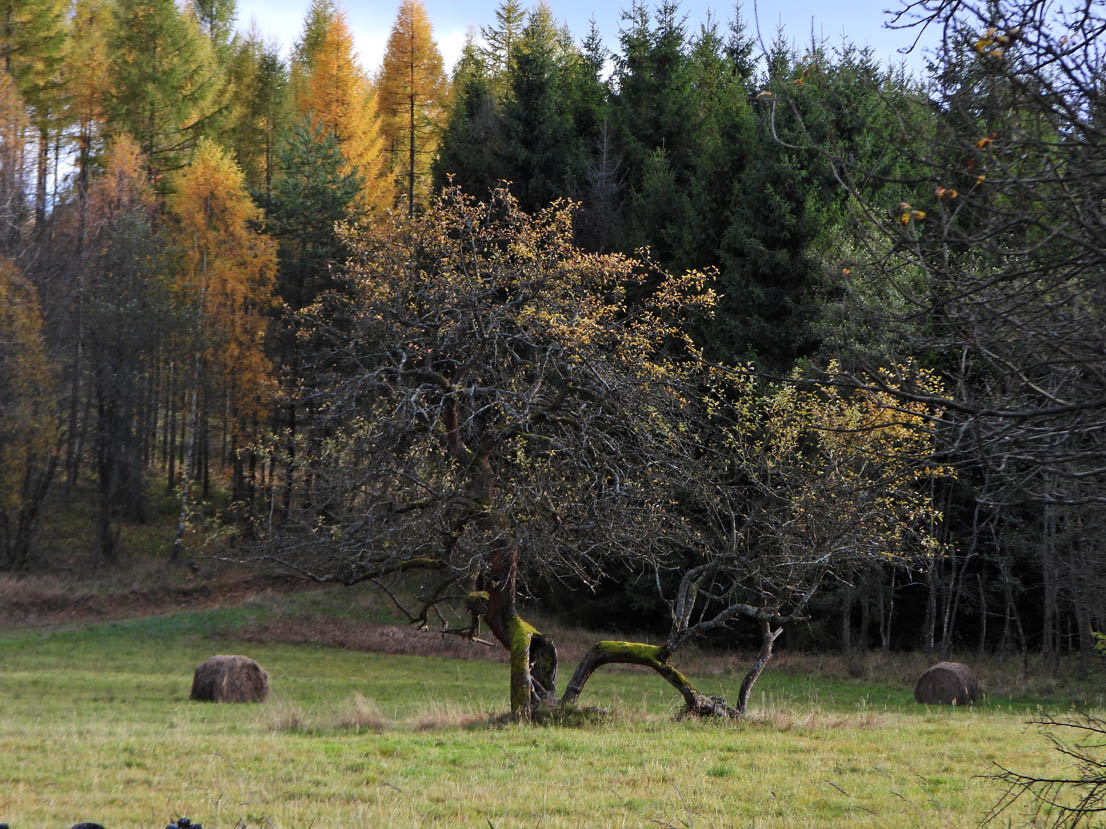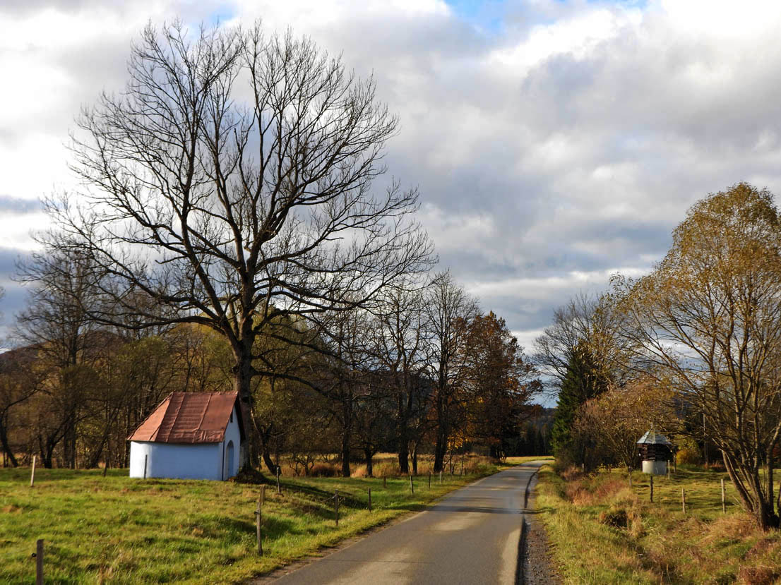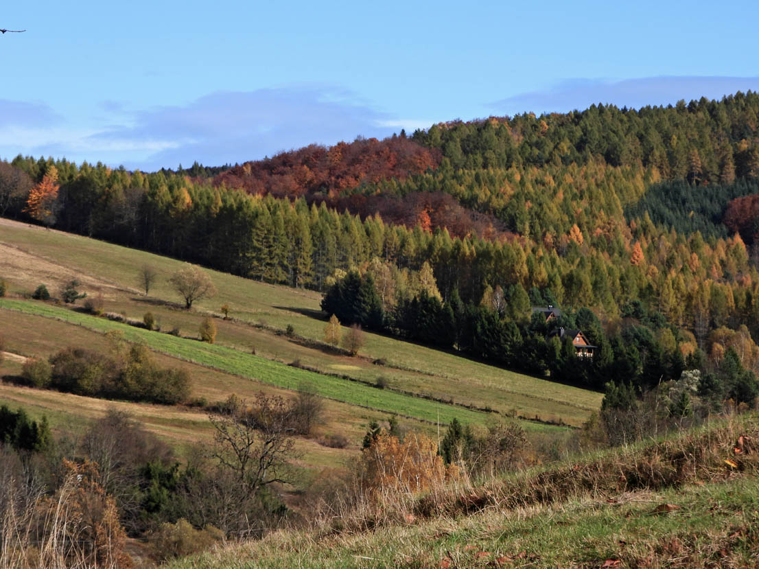 Starsza pani grabi jesienne liście, pan krząta się po warsztacie. Dom odnowiony, wypielęgnowany ogródek, za nimi szeroka łąka i widok na rozległą dolinę i wzniesienia, teraz zalesione. „Ten widok nam się już kilkukrotnie zmienił. Najpierw były łąki, owce, teraz równo porośnięte wzniesienia, las” – opowiadają. Do wsi zaczęli przyjeżdżać jeszcze w latach 70., potem kupili dom, długo remontowali, na stałe osiedli na emeryturze. „Spokój tu mamy” – stwierdzają zgodnie.