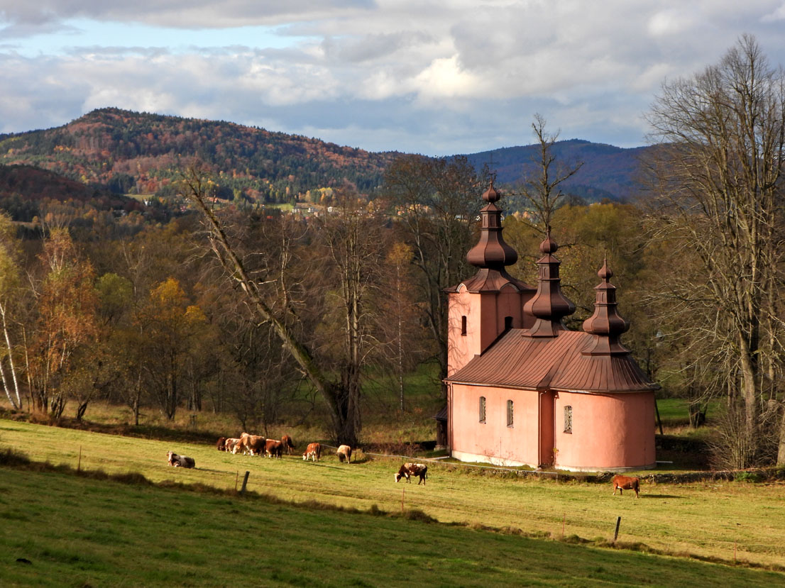 Jest piękny październikowy dzień. Niskie słońce przebija się przez białe, kłębiaste chmury, między nimi wyłania się mocno błękitne niebo. Idealne warunki dla amatorów fotografii Beskidu Niskiego. W Blechnarce nie brakuje obiektów i modelek. Żeby nie popadać w sentymentalizm, odrywam się od kapliczek, malinowej cerkwi, pasących się krów i wolno biegających kur.