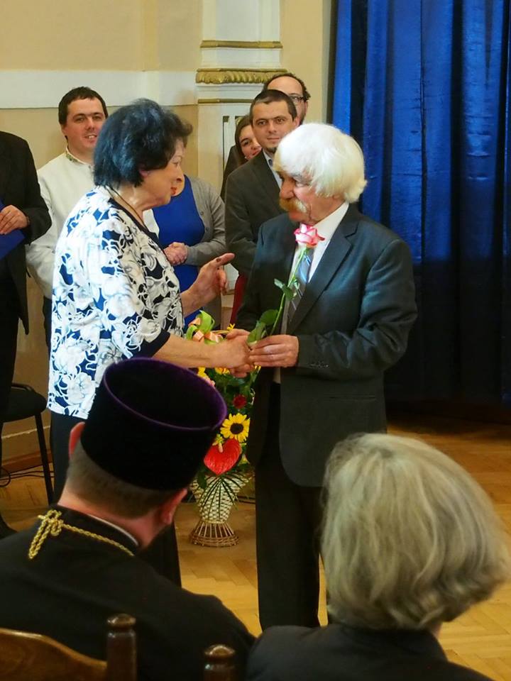 Шефредактор тыждениика «Інфо Русин» та редактор радия лем.фм, Петро Медвідь, зложыл на рукы ювілята Памятну Плякєту зрыхтувану Округлым Столом Русинів Словациі за вклад в одроджыня русиньского народу Лемковины і цілой Карпатской Руси.