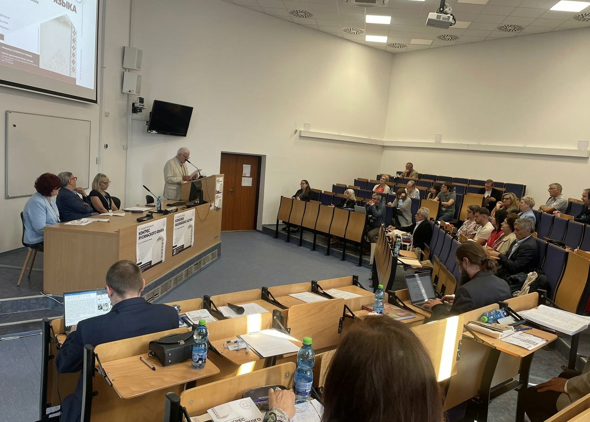 Конґрес згромадил академіків, языкознавців і практиків з вельох держав. Ретрансмісия в четвер обнимат пленарне засіданя, в котрым своі рефераты выголосили: проф. Павел Роберт Маґочій, проф. Олена Дуць-Файфер, проф. Юлия Дудашова та італияньскій тлумач проф. Люка Кальві.