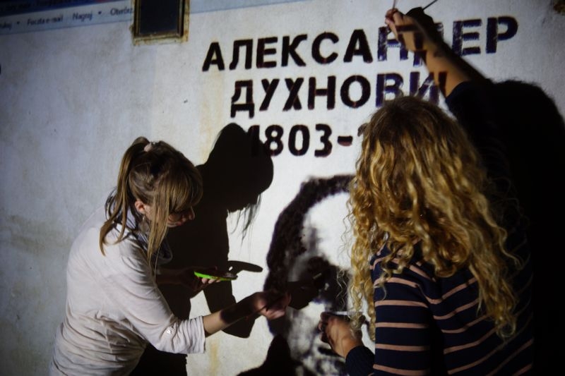 В часі, коли старшы розсмакуували ся в бурсяній каві, молодіж скоро зорґанізувала сой огниско, жебы тіж як найскорше мочы продолжати діло, котре зачало ся о два дни скорше, в середу. Товды то, ліцеалісты, ученыкы лемківского языка, святкували закінчыня шкільного рока. А святкували не хоц-як, бо при роботі, додаючы до того, же был то праві початок вакаций – розмалювали на прибурсяным мурі близко двометрового Івана Русенка – в тот спосіб угонорували нашого Учытеля Лемковины і започаткували модерний муральовий пантеном Карпатской Руси. А в пятницю, як сусіда для Русенка, до пантеону молоды домалювали Будителя з Пряшівской Руси – Александра Духновича. При нагоді каждий собі припоминал, што о тых двох Русинах знат. І так зышло до ночы…