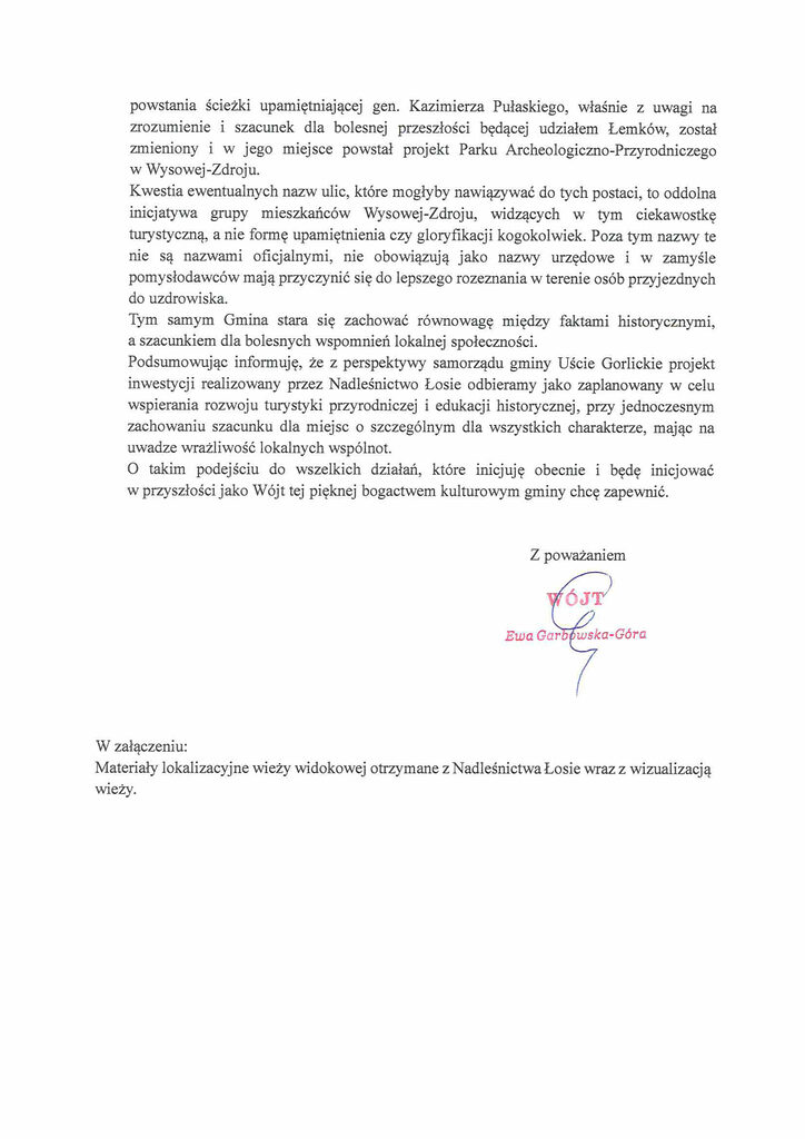 Na wniosek Wójt Gminy Uście Gorlickie Ewy Garbowskiej-Góry publikujemy w całości stanowisko gminy ws. budowy wieży na Górze Jawor, którego cytaty zostały wykorzystane w artykule «Подля Ґміны Устя Рускє – вежа на Горі Явір то барз добра думка» z dnia 27. lutego 2025 r.