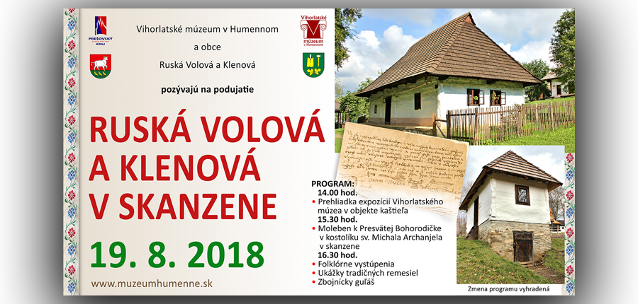 Вігорлатьскый музей в Гуменнім орґанізує 19-го авґуста 2018-го року подію в рамках проєкту Родаци в сканзені під назвов Руська Волова і Кленова в сканзені. На подію, котра зачне о другій пополідне, музей запрошать нелем родаків тых двох сел, но і вшыткых любителів історії, фолкору ці традічных народных ремесел.