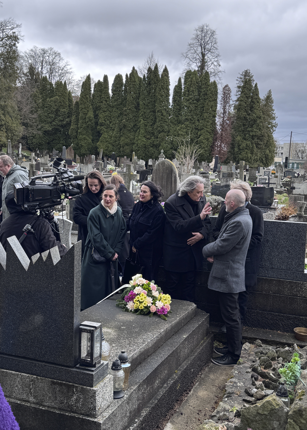 Наперед выбрали ся на гріб Івана Гриця-Дуды (рр. 1911 – 1999) – основателя і першого директора втогдышнього УНТ. Тот родак із Рудлова, окрес Воронів над Топльов, як 34-річный взяв ся за тото, жебы в Пряшові зробити театер. На його гробі в Сабінови директор ТАД Маріян Марко положыв квіткы, і подяковав основательови за рішіня, вдяка котрому днесь може існовати русиньскый Театер Александра Духновіча. Поспоминав на Гриця-Дуду як на выняткового чоловіка, із котрым мав можливость пізніше ся особно познати.