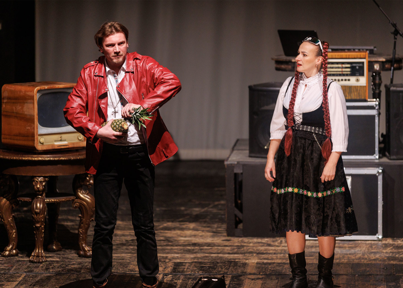 Молодый гостюючій режісер Крістіан Козменко не мав легку роль. Треба было зробити днесь уж класічный текст, котрый у 1946-ім як пєршу пєсу одпремєровав УНТ, но не мала то быти лем якась носталґічна спомина на то, што на сцені появило ся перед 80-ма роками.