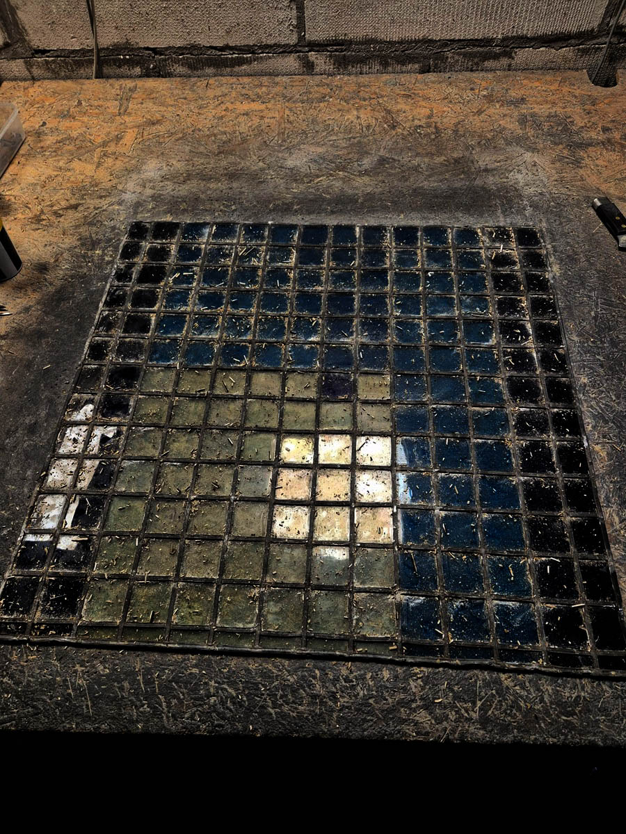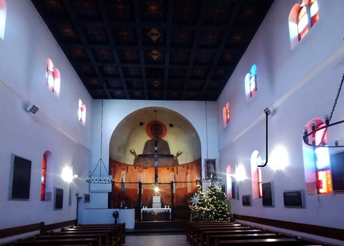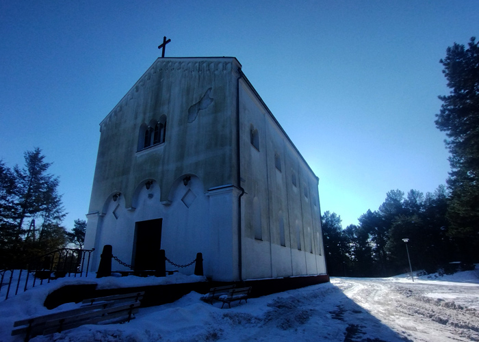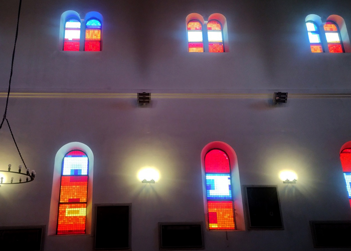 Артисті помагали молодый фільмовец Павел Ружевич, маляр Мілош Бенедиктович, студенты і місцева молодіж, в тым будучый консерватор памятників Павел Садлей. Вітражы, котры так само запроєктувал Новосільскій, зробила артистка Тереса Реклевска. Вітражы мают барз просту ґеометричну форму, а схоснувана кольористика то: синій, червеный, жолтый, помаранчевый та прозрачный. Выполнили 19 вікєн.