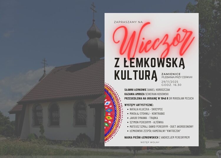В найблизшу суботу, 29. листопада/новембра замецницка грекокатолицка парохія св. Йоана Крестителя буде гостила «Вечер з лемківском культуром». То подія, яка запрезентує спектрум лемківской культуры і істориі.