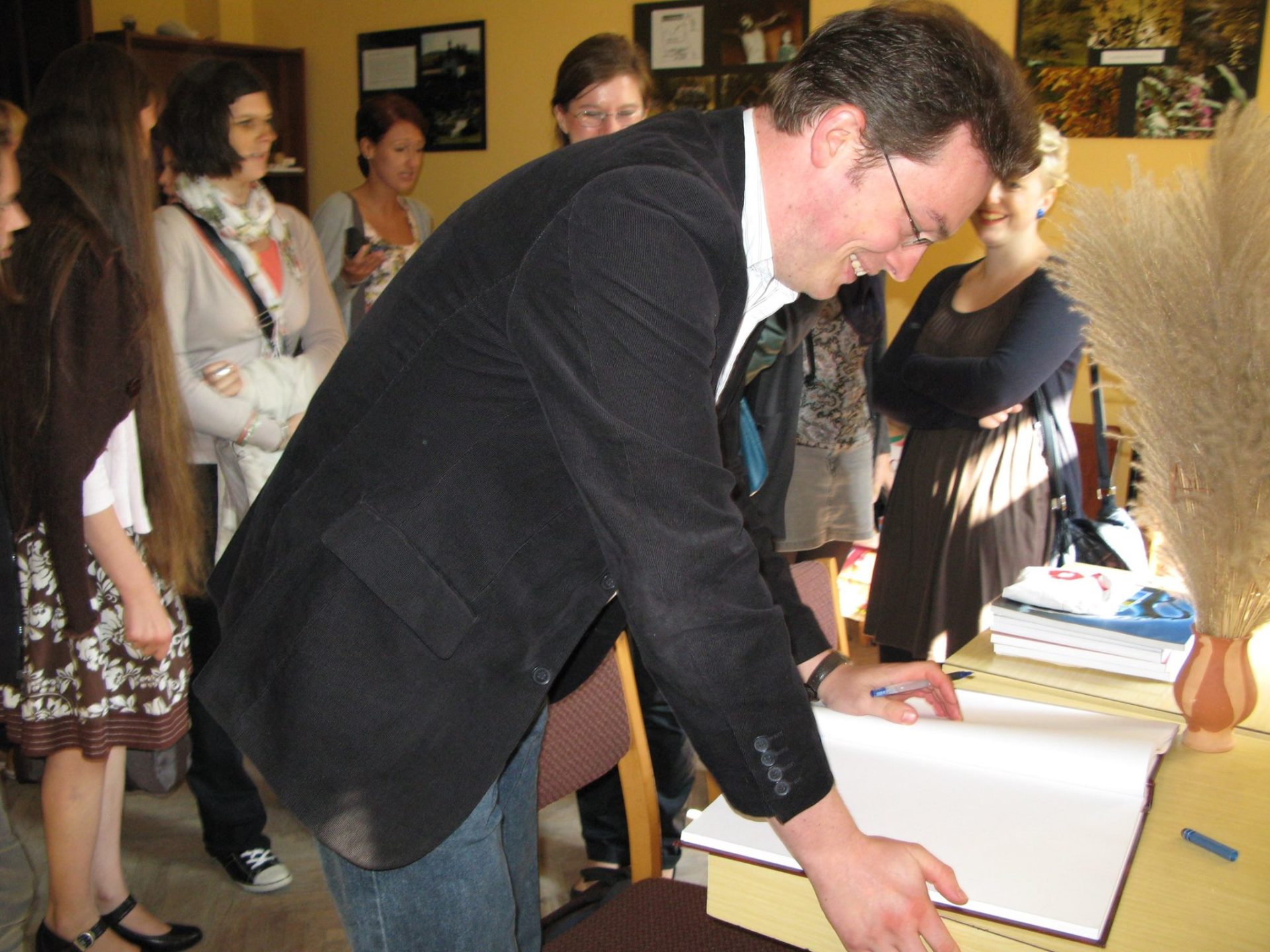 проф. Ахім Рабус, вписуючий ся до памятковой книгы в Рускій Бурсі