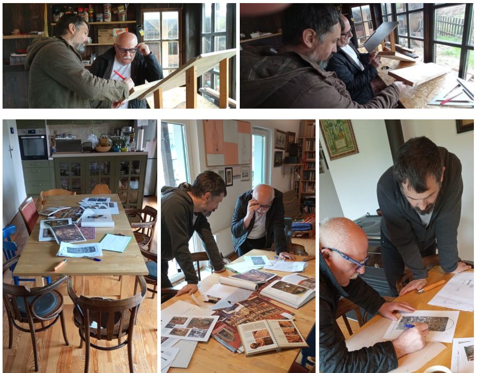 «Купили сме одповідньой долгости дощкы, склиіли сме іх, зробили сме рисунок» – в телеґрафічным скорочыню подає Богдан. «Рисунок єст з натуры. Клячали сме перед іконостасом, перед царскыма воротами і сме переносили взір. Мі ся здає, же майстры, котры робили тото в тамых часах, мали шаблоны. Мы не мали» – дополнят Петро. «То была трудна робота» – сконстатувал учытель.